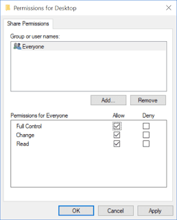 Highlight the Everyone group which should be in the top pane and allow Full Control. If there isn’t an Everyone group, click Add and type ‘Everyone’ in the bottom pane and then select it.