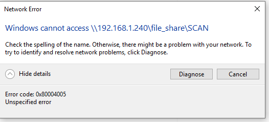 If you made changes to any of these settings, retest your share to see if it fixed the error.